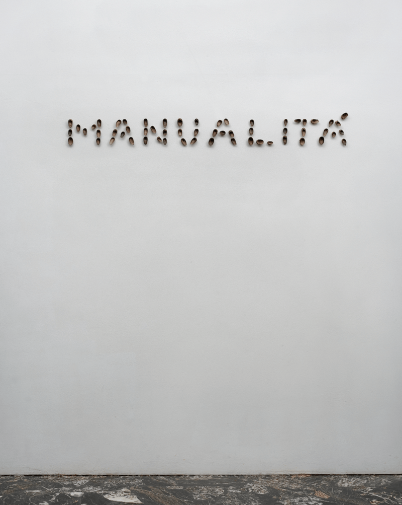08:00 – 17:00, 2021; Concordarsi per una pausa, 2021; Relazioni occasionali, 2023; Rifugio, 2023; Sporco, caldo, duro lavoro, 2024; Cupo, 2024, sono una serie di opere realizzate da Marco Degl’Innocenti tra il 2021 e il 2024, che hanno come tema di indagine il lavoro. Se “l’elogio di una mano” che crea, in sintonia con l’attorno e la natura, sono argomenti affrontati nelle opere precedenti, in questa nuova produzione l’artista sembra mettersi in ascolto, osservando la sapienza e la fatica dei lavoratori, grazie ai quali anche alcune delle sue opere prendono vita. La riflessione si orienta su temi come “alienazione” e “emancipazione”, su un lavoro inteso non solo come atto di creazione ma come vera e propria fonte di sostentamento legata a un contratto e un orario. Tutto nasce durante una passeggiata la mattina di un Primo Maggio quando, incastonato nell’asfalto, affiora un bullone. (Serena Becagli)