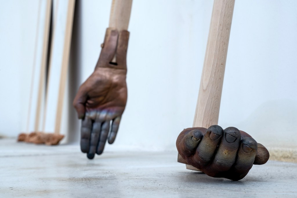 Marco Degl’Innocenti, 08:00 – 17:00. 2021 Bronzo 50×70 cm, 2 elementi. Foto Veronica Citi.